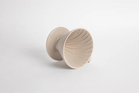 The Hario ceramic drippers are made from Arita-yaki, a traditional style of Japanese ceramics with a 400 year history. Each dripper is handmade by a local craftsperson and, coupled with its functional beauty, create a stunning contrast between the traditional and the modern. The V60's conical shape allows for deeper layering of coffee grounds, and its spiral ridges and lack of flow restriction allow the user to pour water quickly for a delicate body, or slowly for a heavier flavor.